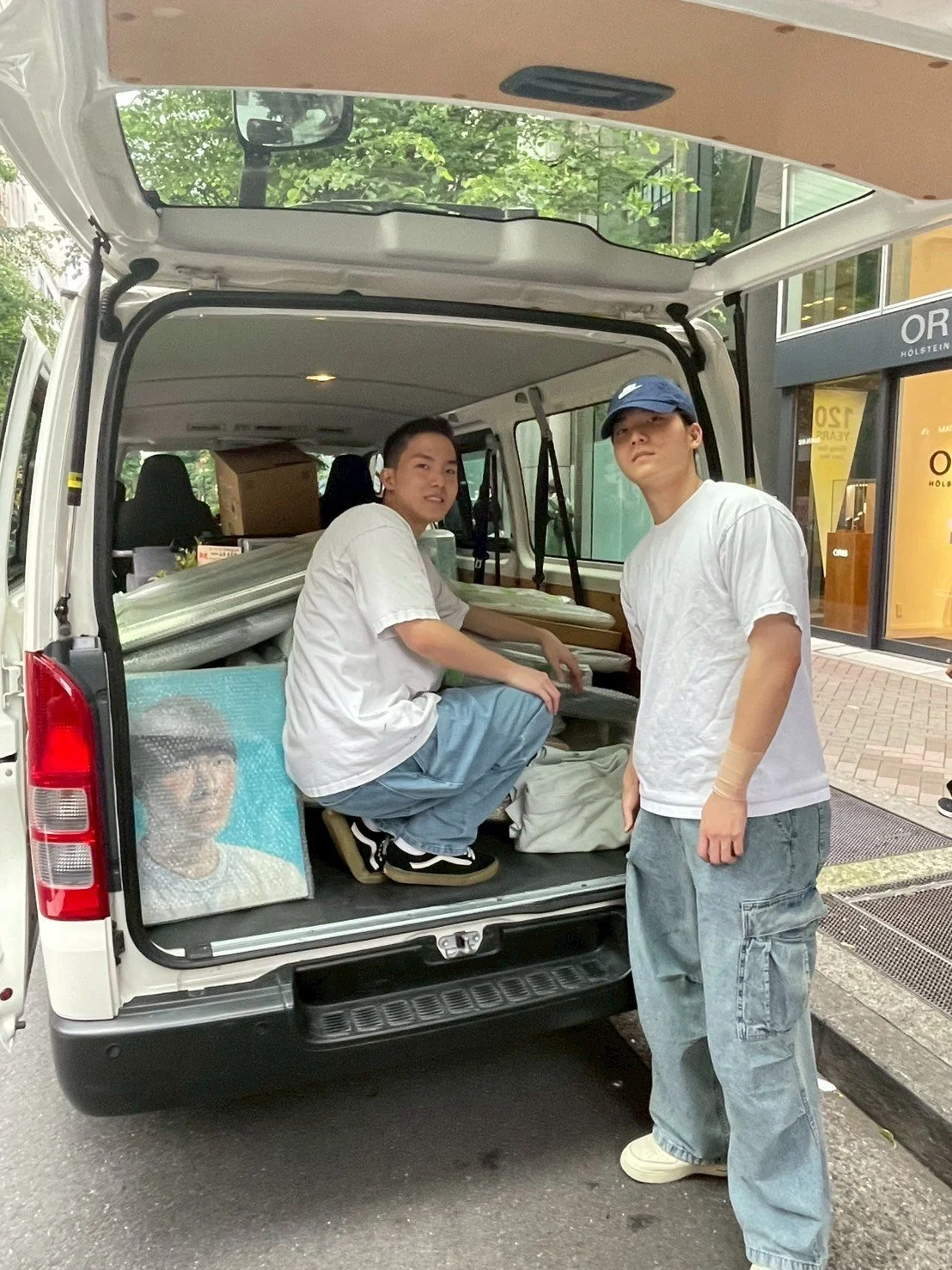 Our first day at Akane Art Gallery was full of excitement and nervous energy. We showed up with our arms full of carefully wrapped canvases, ready to bring the space to life. As we unwrapped each piece and started placing them around the room, the gallery slowly turned into a reflection of our individual styles and shared vision. With a lot of care, we hung each painting around the gallery. By the end of the day, the space was full of color, feeling, and ready to welcome everyone into our world.
